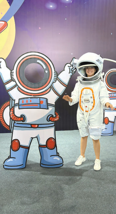 7月21日,墨西哥留学生在位于新疆克拉玛依市的祝融航天科普基地沉浸式感受中国航空航天数字化成就。